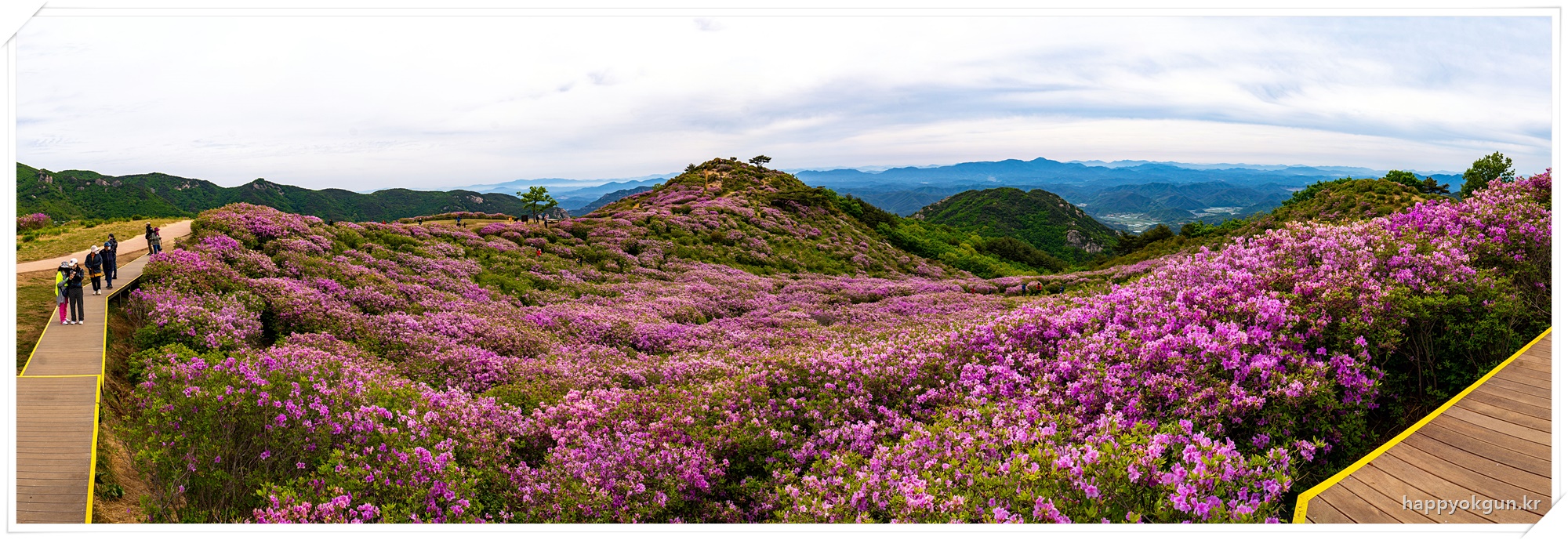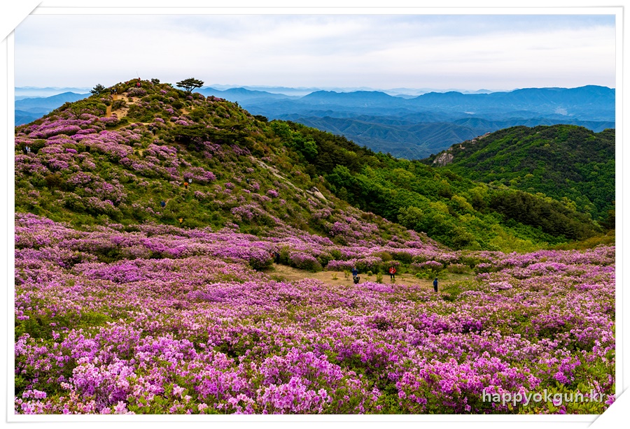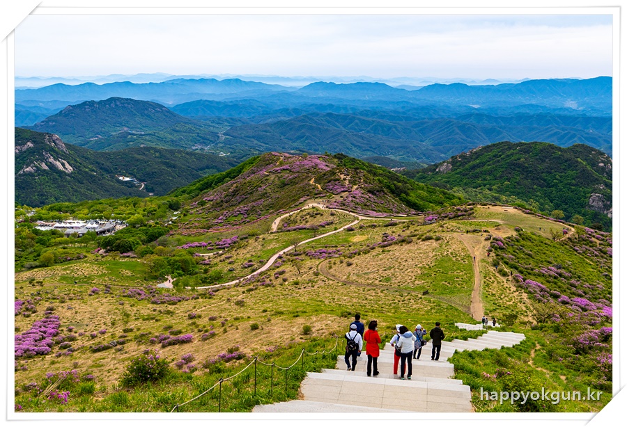 갈림길에서 오른쪽으로 조금 가서 데크에서 내려다 본 철쭉군락지 전체 전경이다. 내가 갔을때는 철쭉가 만개하였다가 서서히 지는 시기이긴 했는데 그래도 철쭉가 정말 많은 모습이 장관이었다.