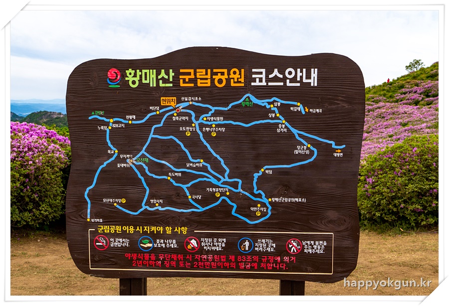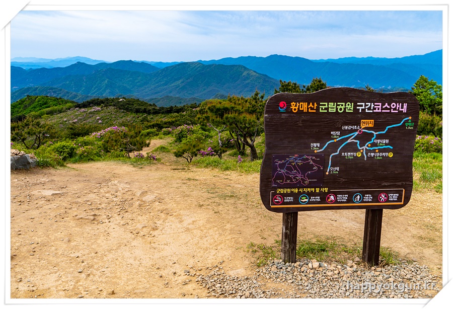 중간쯤 내려가니 황매산 군립공원 안내도와 구급함등이 있는곳을 볼 수 있다.