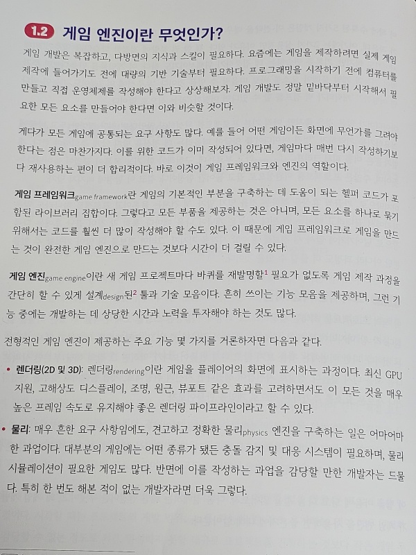 이 책은 우선 챕터1에서 게임엔진에 대한 내용을 이야기해 주고, 이어서 고도엔진4에 대해 간단하게 소개해 줍니다.
