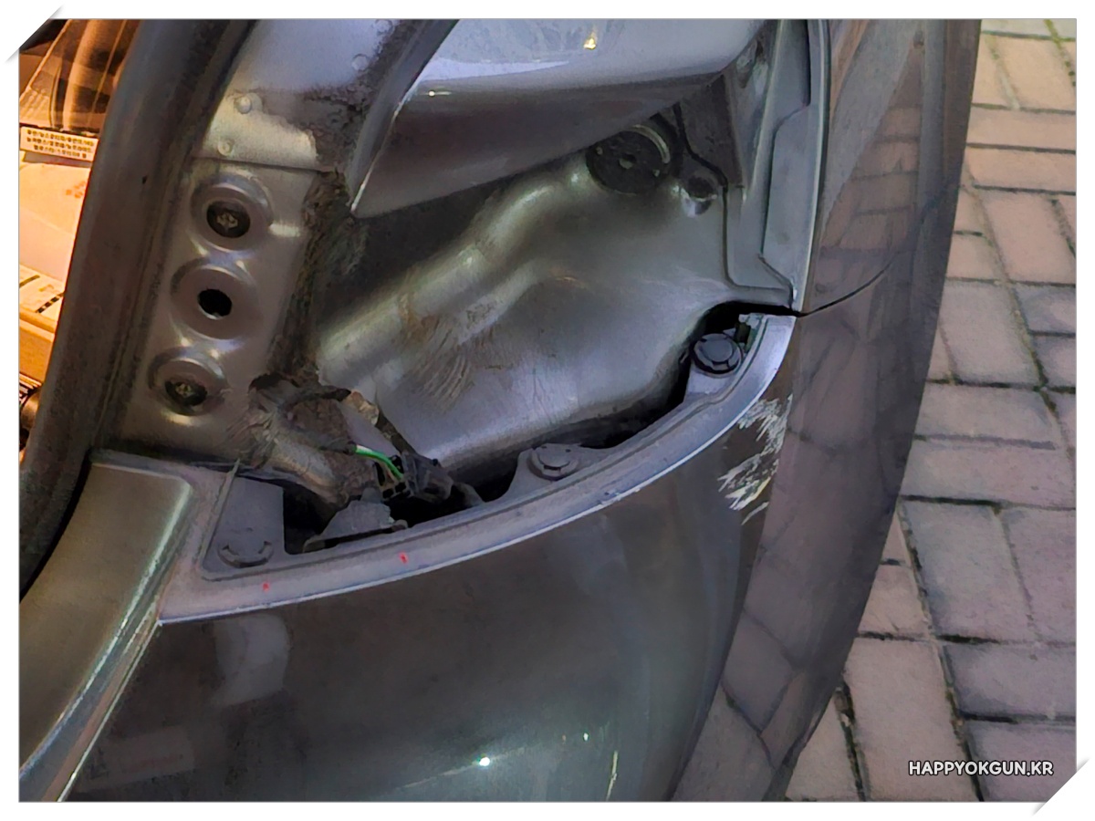 다행히? 옆에 차를 박은건? 아니고, 떡 저 높이에 살짝 튀어나온 구조물이 있었는데 거기를 박았네요;;