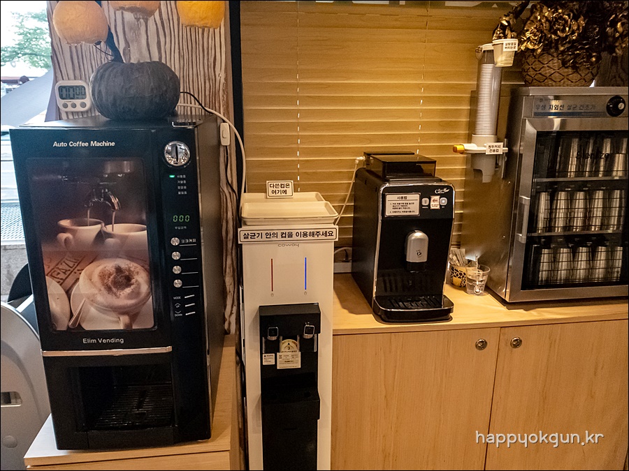 식사를 마치고 입구쪽으로 나가면 후식으로 따뜻한 커피 한잔을 할 수 있게 커피자판기가 있습니다.