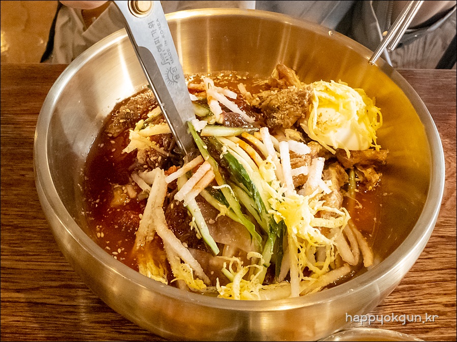 익숙한 맛이지만 언제나 맛있는 새콤달콤 비빔냉면 이네요.