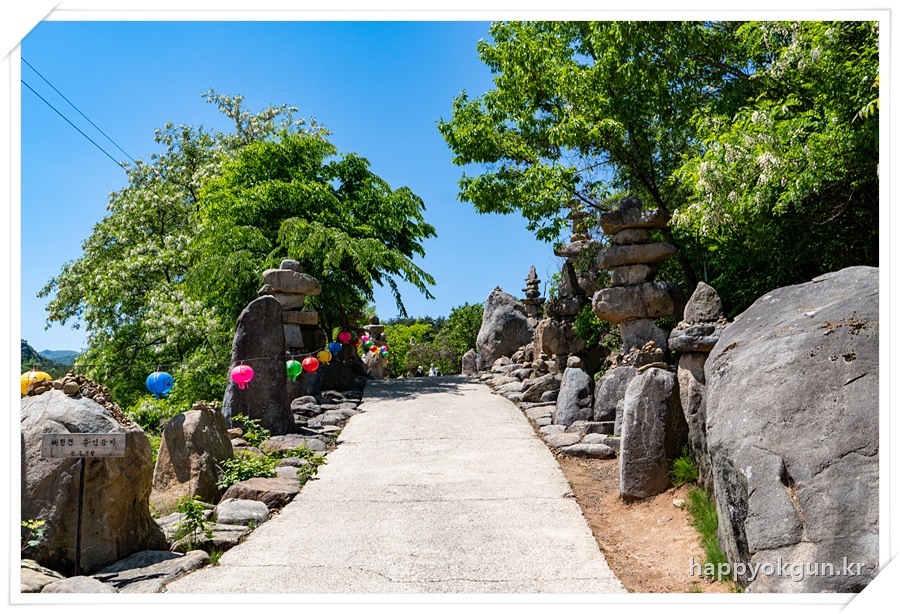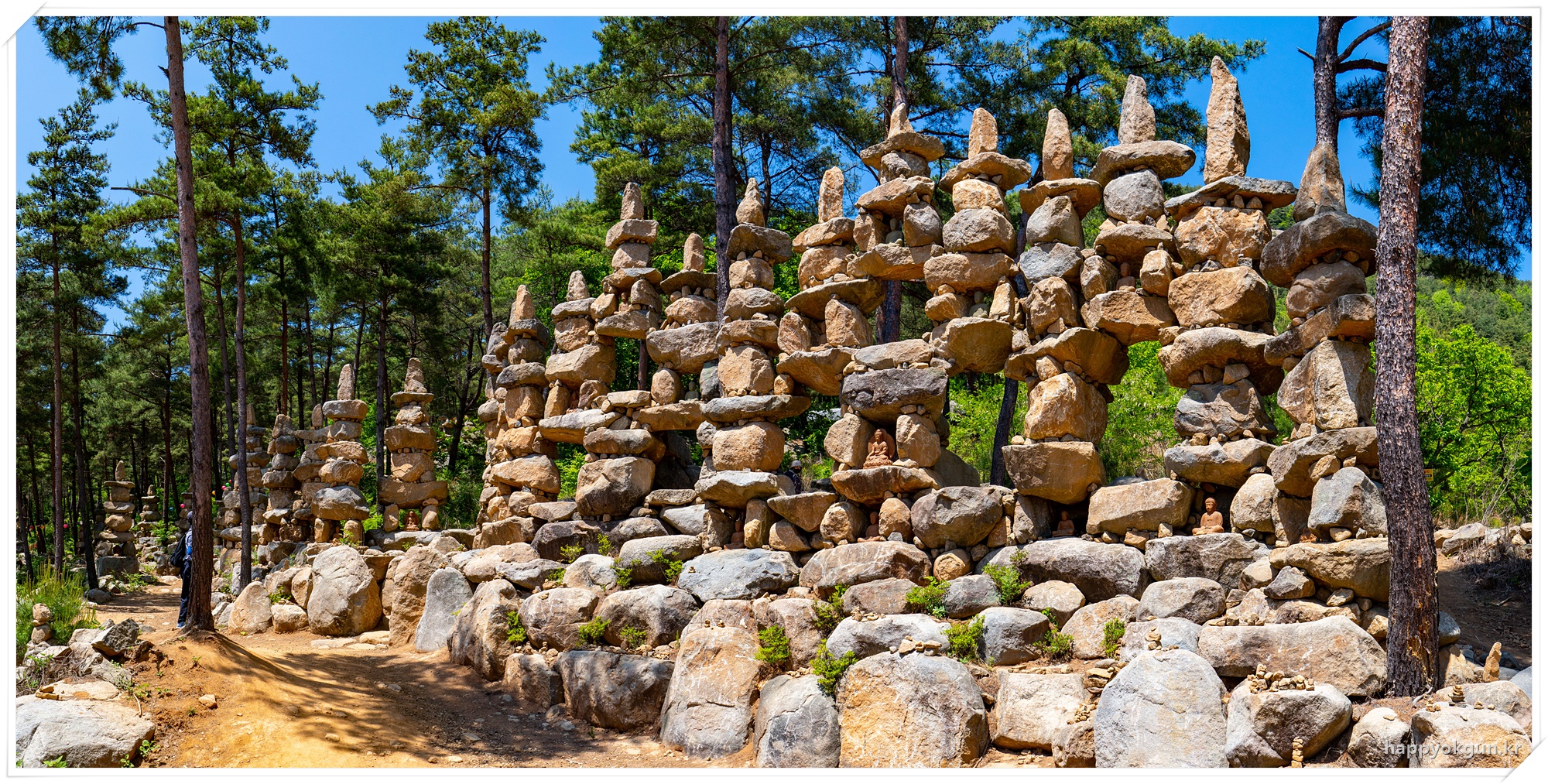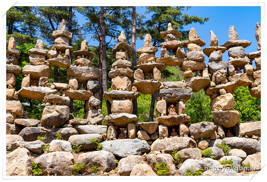 아직 입구는 아닌거 같은데 길 양 옆으로 다양한 모습으로 쌓아놓은 돌탑들이 나를 반겨준다.
