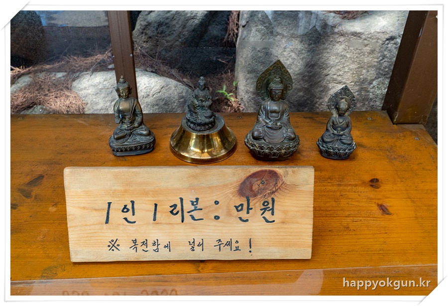 드디어 입구에 도착했다. 안내문도 여기저기 있고, 무엇보다 복전함 뒤에 있는 불상이 귀엽다...+_+