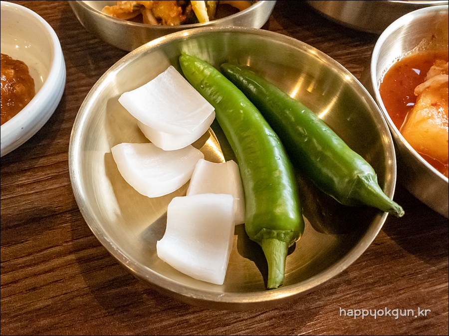 주문하고 조금 있으니 기본 반찬이 나왔습니다. 특별하지는 않지만, 기본적이면서도 맛이 보장되는 반찬들 입니다. ㅎㅎ