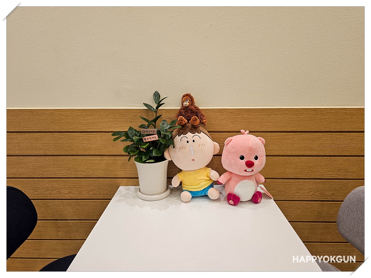 카페 마일로의 특징인지 아니면 매장 운영하시는분의 취향인지 모르겠지만 테이블 곳곳에 귀여운 캐릭터 인형들이 반겨주고 있습니다.^^