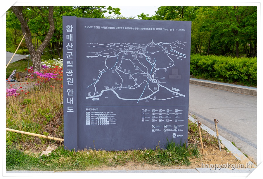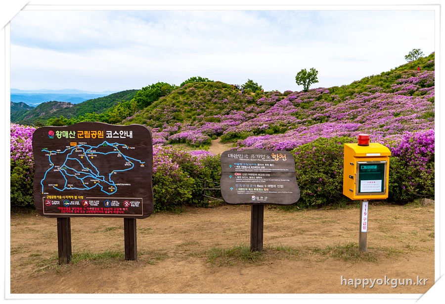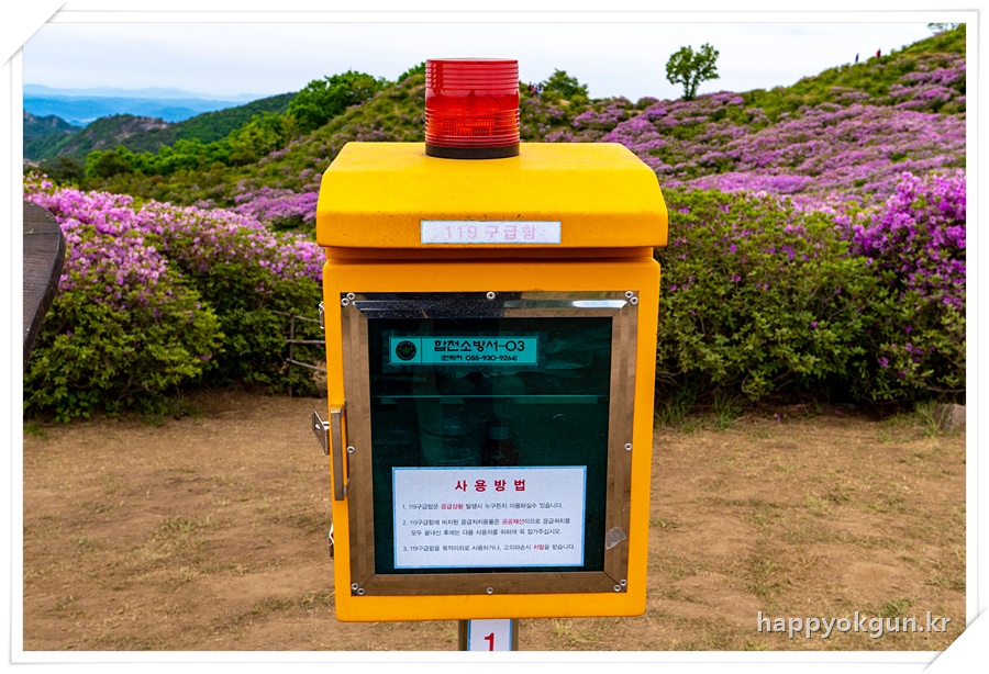 중간쯤 내려가니 황매산 군립공원 안내도와 구급함등이 있는곳을 볼 수 있다.