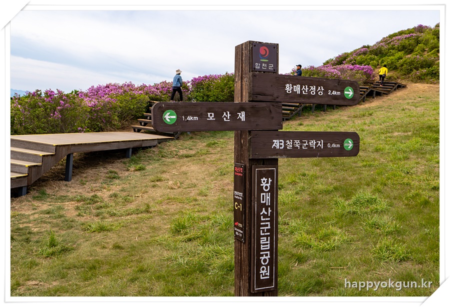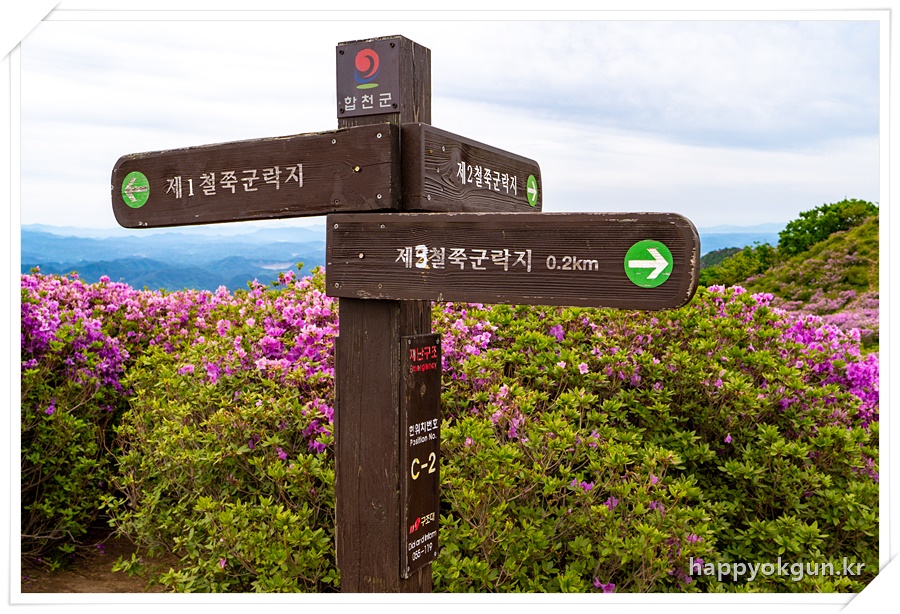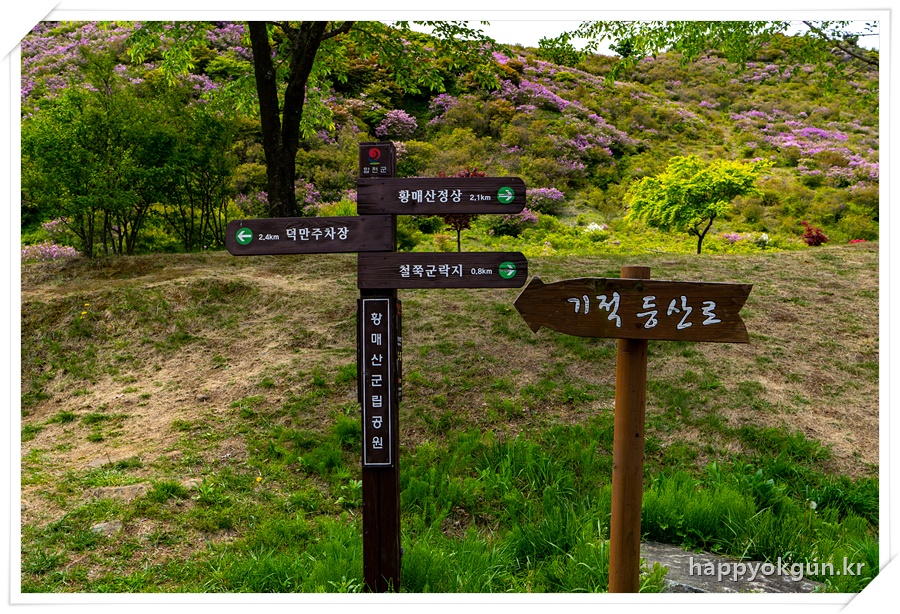처음 만나는 갈림길이다. 왼쪽으로 가면 철쭉 군락지로 바로 갈 수 있고, 오른쪽으로 가면 황매산 정상으로 가는 길 이다.