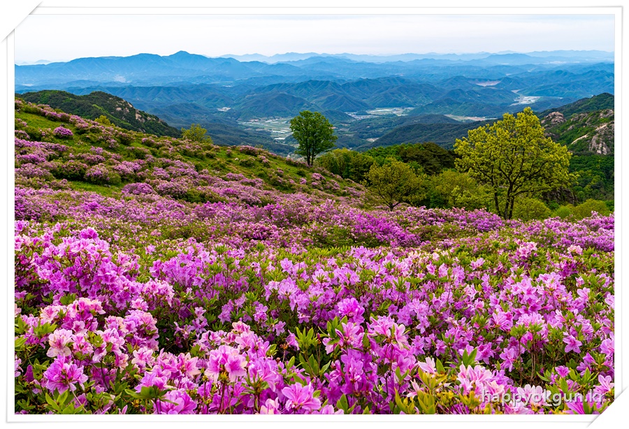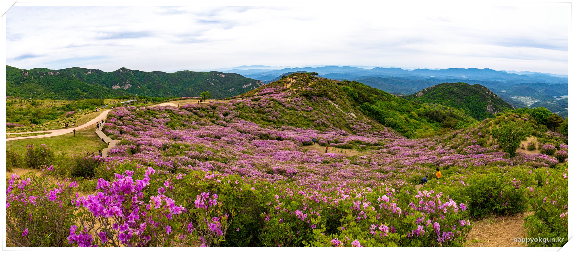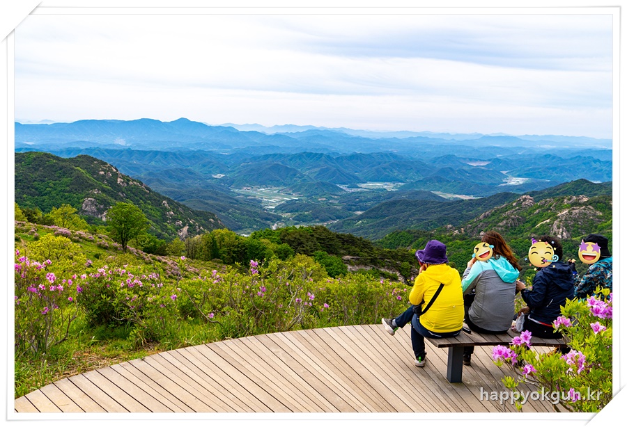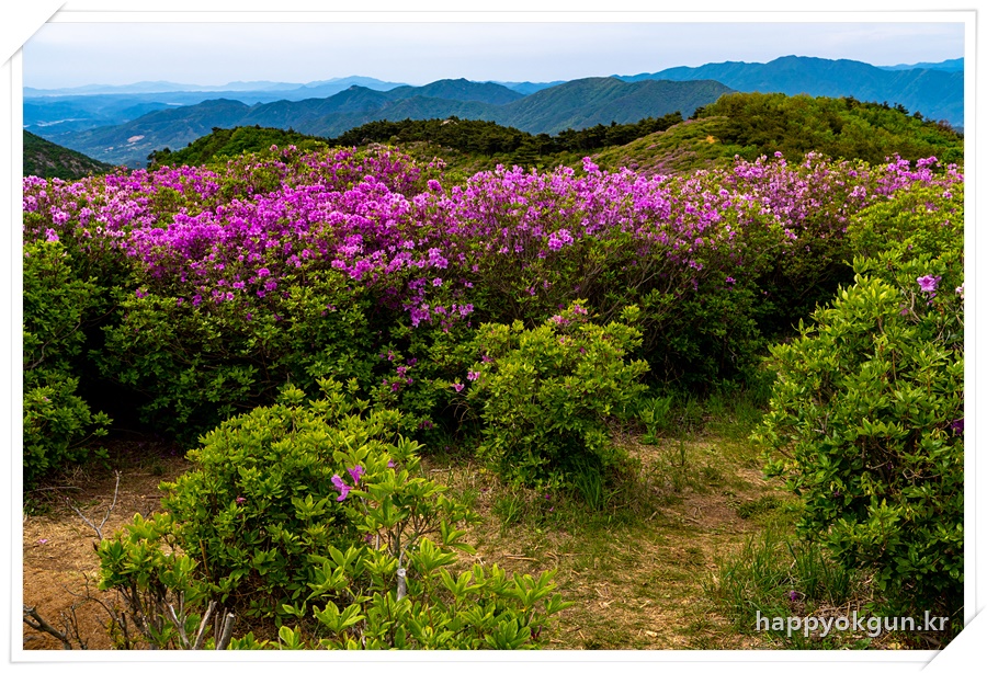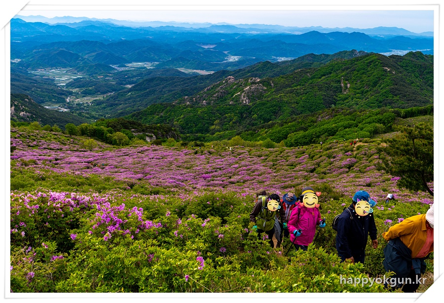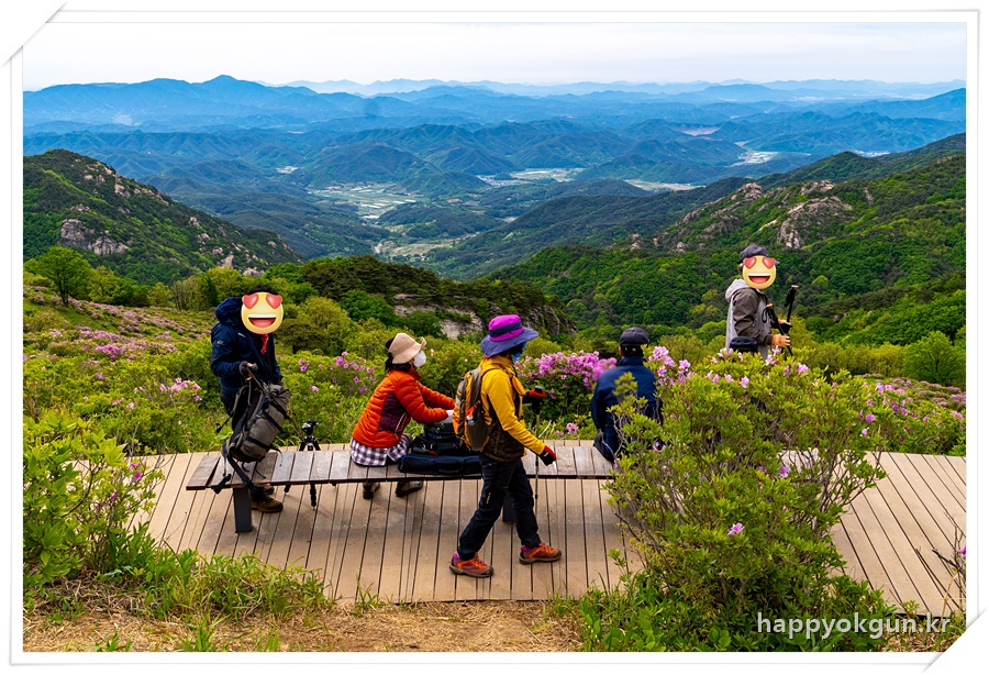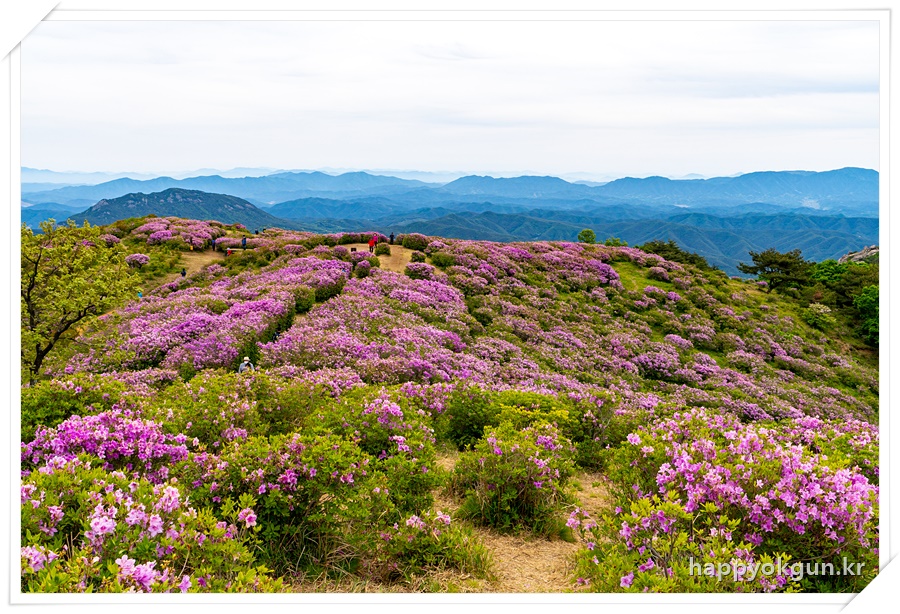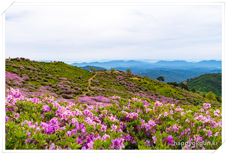 갈림길에서 오른쪽으로 조금 가서 데크에서 내려다 본 철쭉군락지 전체 전경이다. 내가 갔을때는 철쭉가 만개하였다가 서서히 지는 시기이긴 했는데 그래도 철쭉가 정말 많은 모습이 장관이었다.