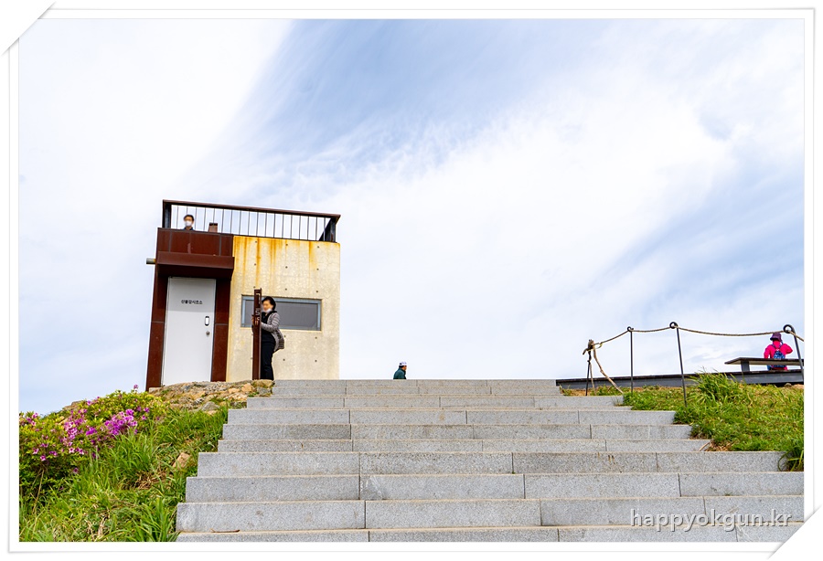 다 올라오니 황매산 산불감시초소가 보인다. 여기서 철쭉 군락지를 한눈에 둘러볼 수 있다.