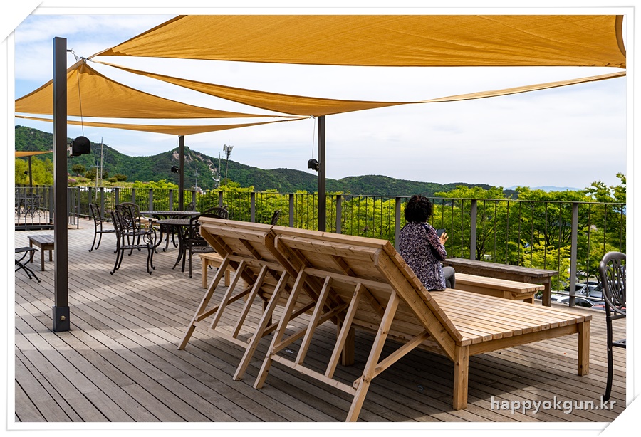 주차장 위로 올라가면 이렇게 데크에 벤치와 테이블이 있어서 앉아서 휴식하며 커피한잔 하기 좋은 곳으로 꾸며져 있다.