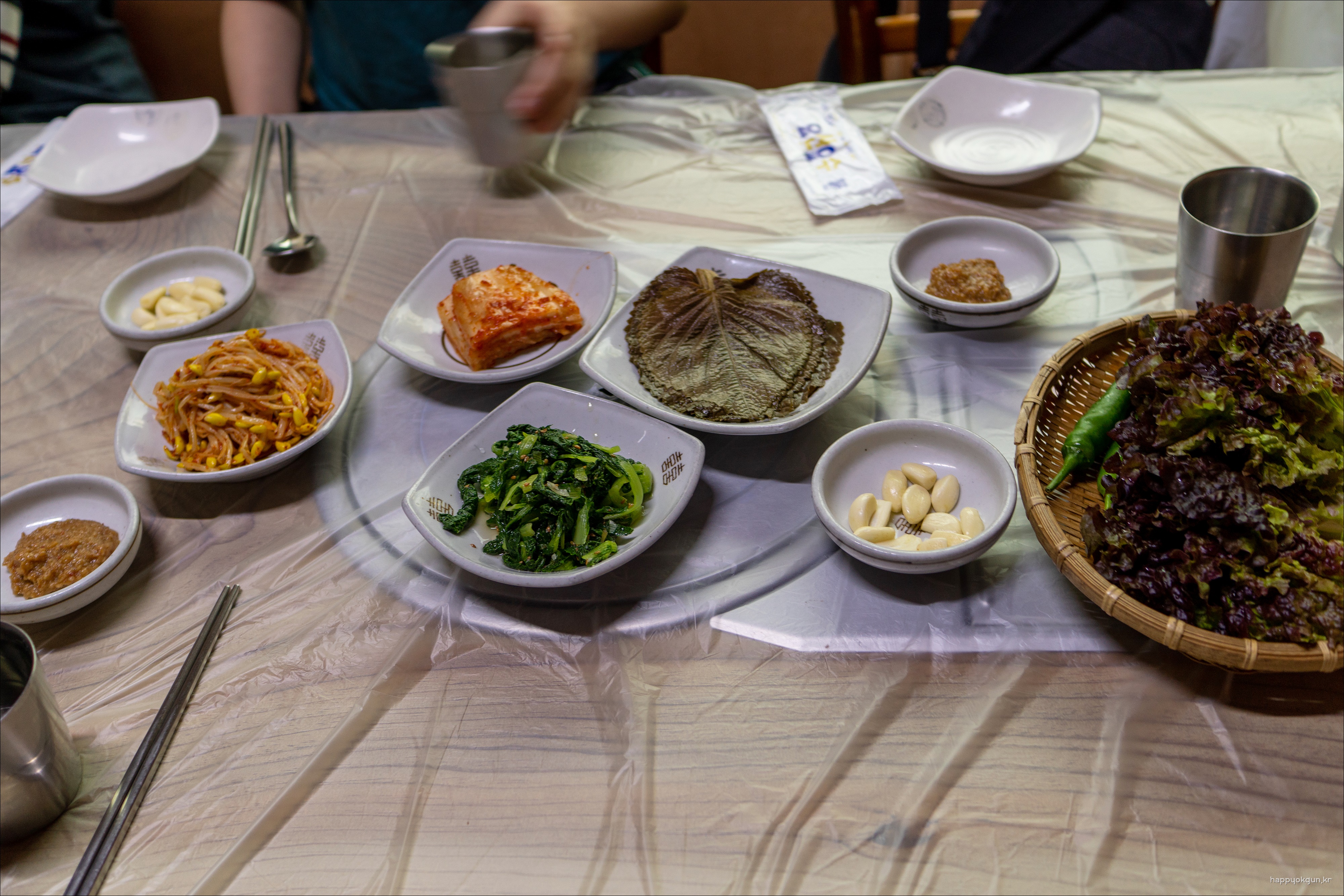 기본 반찬이 먼저 셋팅 됩니다. 배가 고파서 나물을 먹고 있으니...