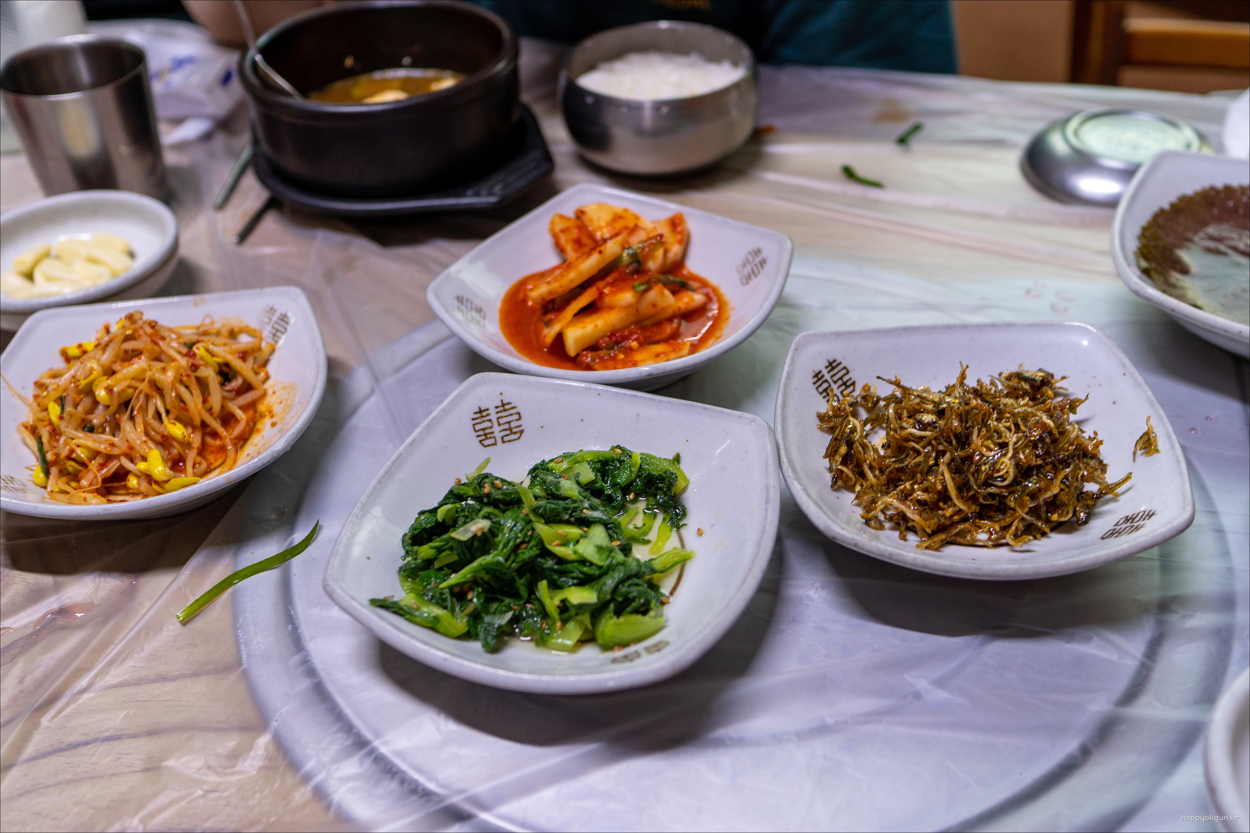 기본 반찬이 먼저 셋팅 됩니다. 배가 고파서 나물을 먹고 있으니...