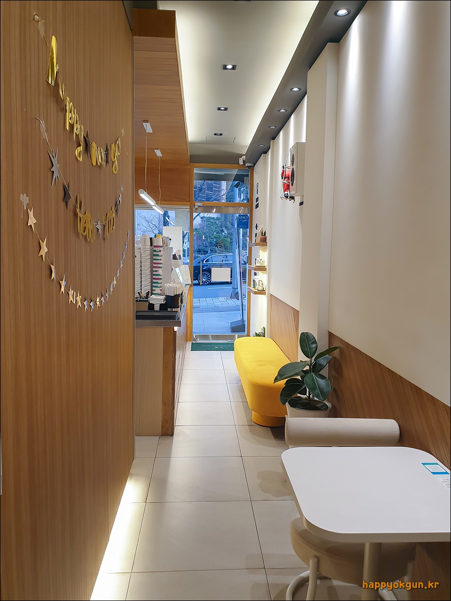 카페가 세로로 긴 형태라 통로가 살짝 좁은 느낌이긴 합니다.
